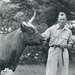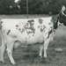 National Dairy Cattle Congress. Ayrshire cow with a man. Stamped on the back: "Pete's Fitting and Photo Service, Wykoff, Minnesota. Re-order number 1-5823-68" Written on back: "Gr Champion Ayrshire female, Iow Ayr Ormsbys Babs, Owner - Maynard land, Brooklyn, Iowa." Grout Museum District. Additional photographs and artifacts can be found on the Grout Museum Districts online collections website at https://gmdistrict.catalogaccess.com/