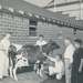 National Dairy Cattle Congress. Ayrshire cow with three teen boys, a man, and woman. Written on back: "Taken by Jim Baird, see 2/25/58 Courier. Jr. Ayr.Designer Hattie. From left: Merle Lang, Maynard Lang, Jack Lang, Mr. and Mrs. Howie Lang. Mr. and Mrs. Howie Lang, Brooklyn or Grinnell, Iowa, watch 3 sons groom Ayrshire for show." Brick building. Glasses. Grout Museum District. Additional photographs and artifacts can be found on the Grout Museum Districts online collections website at https://gmdistrict.catalogaccess.com/