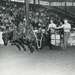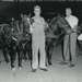 National Dairy Cattle Congress. 2 horses pulling weight. Man. Baseball cap. audience. Grout Museum District. Additional photographs and artifacts can be found on the Grout Museum Districts online collections website at https://gmdistrict.catalogaccess.com/