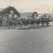 National Dairy Cattle Congress. 8-horse team pulling wagon. Written on wagon: "The Boyt Company." Brick Buildings. One building says: Welcome 1948 Holstein National Show, Holsteins, No. 6." Another building: "Welcome 1948 Holstein National Show, Holsteins, No. 7." A smaller building says: "Model Milkhouse." Signage: "Men's Rest Rooms." Man. Flag. Crowd. Suit. Hat. Written on back: "1958." Grout Museum District. Additional photographs and artifacts can be found on the Grout Museum Districts online collections website at https://gmdistrict.catalogaccess.com/