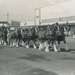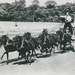 National Dairy Cattle Congress. 8-team pulling wagon. Wagon says, "Budweiser, Anheuser-Busch." Men in uniform. Dog. Horse. Cases being hauled on wagon. Brick Building. Estel Hall. Pig tails. Girl. Grout Museum District. Additional photographs and artifacts can be found on the Grout Museum Districts online collections website at https://gmdistrict.catalogaccess.com/