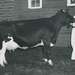 National Dairy Cattle Congress. Holstein cow with teen boy. Printed below photo: "Hollett Studio, 1025 Falls Ave., Waterloo, Iowa, phone 8313." Sticker on back of photo says: "Augustine Engraving Company, Marshalltown, Iowa: Firm name: Pokesman Press, Address: Grundy Center, Iowa." Written on back: "Jim Lein, Ch Holstein, 4-H, 1954 DCC" Grout Museum District. Additional photographs and artifacts can be found on the Grout Museum Districts online collections website at https://gmdistrict.catalogaccess.com/