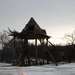 Amanda and Bridget painting the Reed family’s snow dragon sculpture in front of their home. This sculpture was photographed and written about in The Courier (local newspaper).