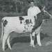 National Dairy Cattle Congress. Ayrshire cow. On the front is printed, "Cook & Gormley." On the back is stamped, "The number of this picture is 12189. Refer to same in ordering prints. Cook & Gormley, Union Stock Yards, Chicago, Ill. " Written is, "Our ideal 2nd prize Ayr bull calf, Lang Ayrshire Assn., Dairy Cattle Congress, 1938" Grout Museum District. Additional photographs and artifacts can be found on the Grout Museum Districts online collections website at https://gmdistrict.catalogaccess.com/